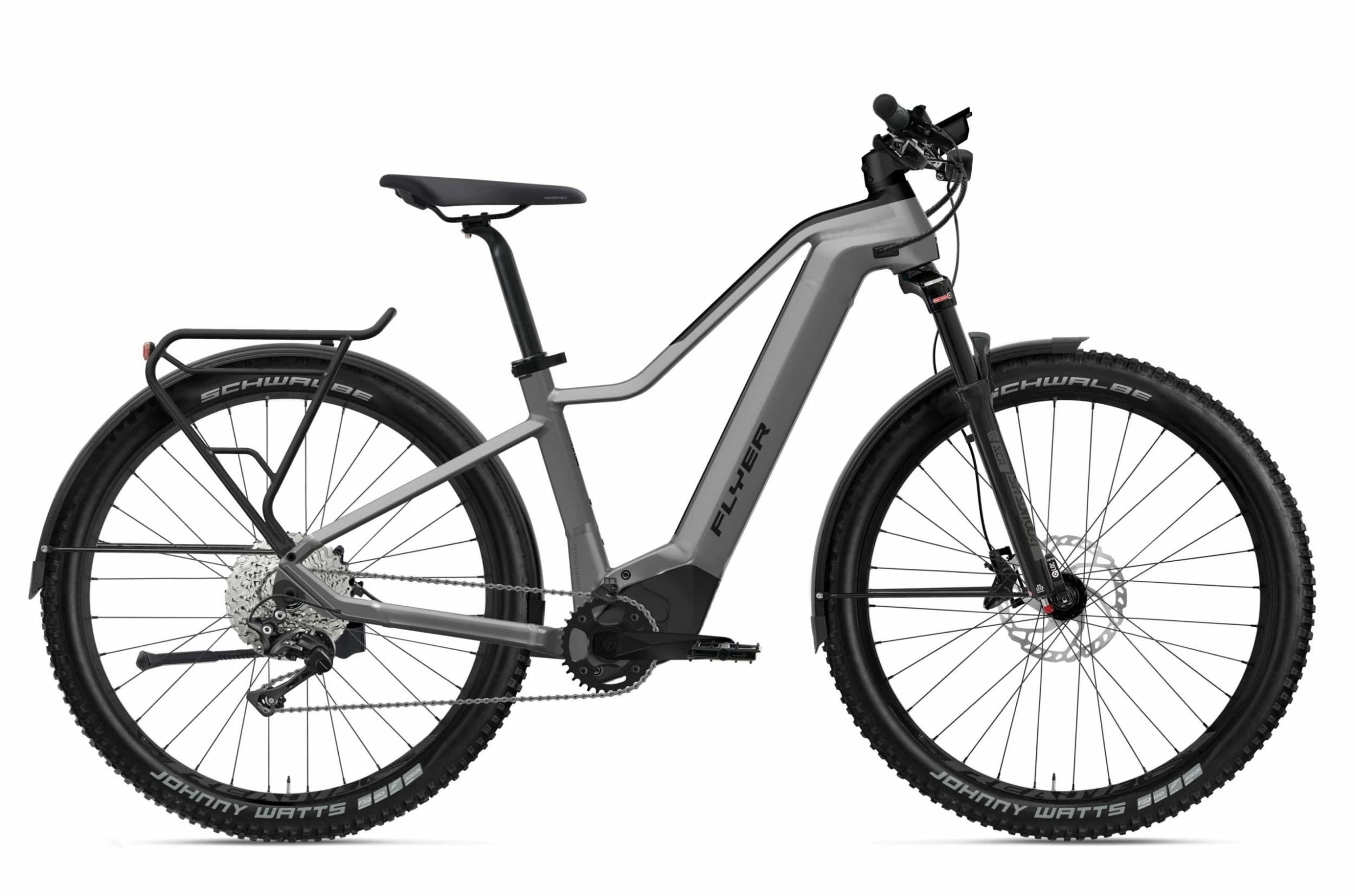 Le Flyer Goroc 2 6.30 2022 vous offrira une grande polyvalence et surtout beaucoup de puissance. Ce vélo électrique de randonnée s’appuie sur un tout nouveau cadre en aluminium avec tube de direction de 1,8 pouce qui assure une grande rigidité et une stabilité pour vos déplacements en ville ou sur les chemins. Une bonne partie du confort est aussi assurée par les pneus Schwalbe Johnny Watts 2,6 pouces qui chaussent des roues 29 pouces. Des qualités qui permettent à Flyer d’oser la comparaison avec les SUV automobiles.