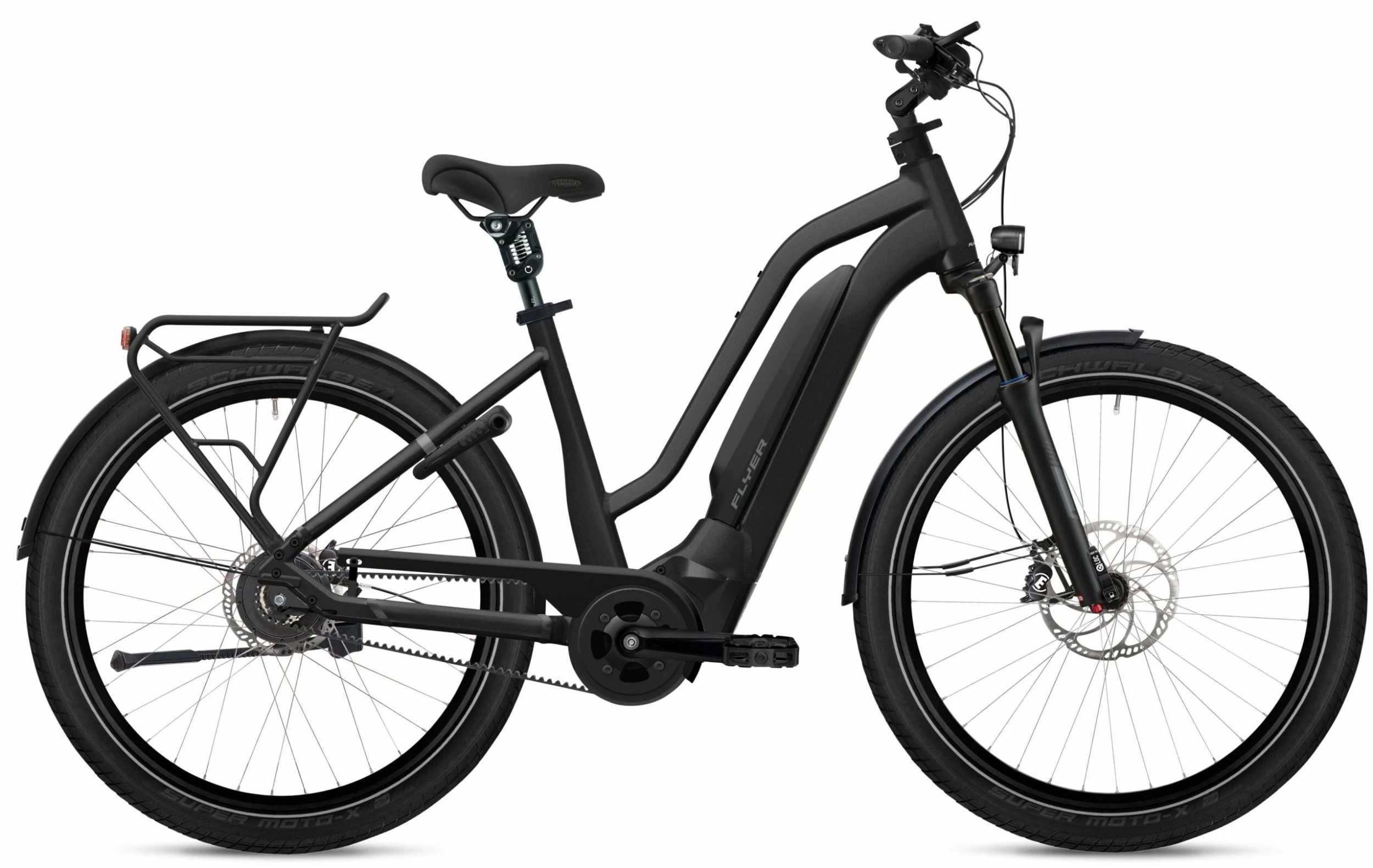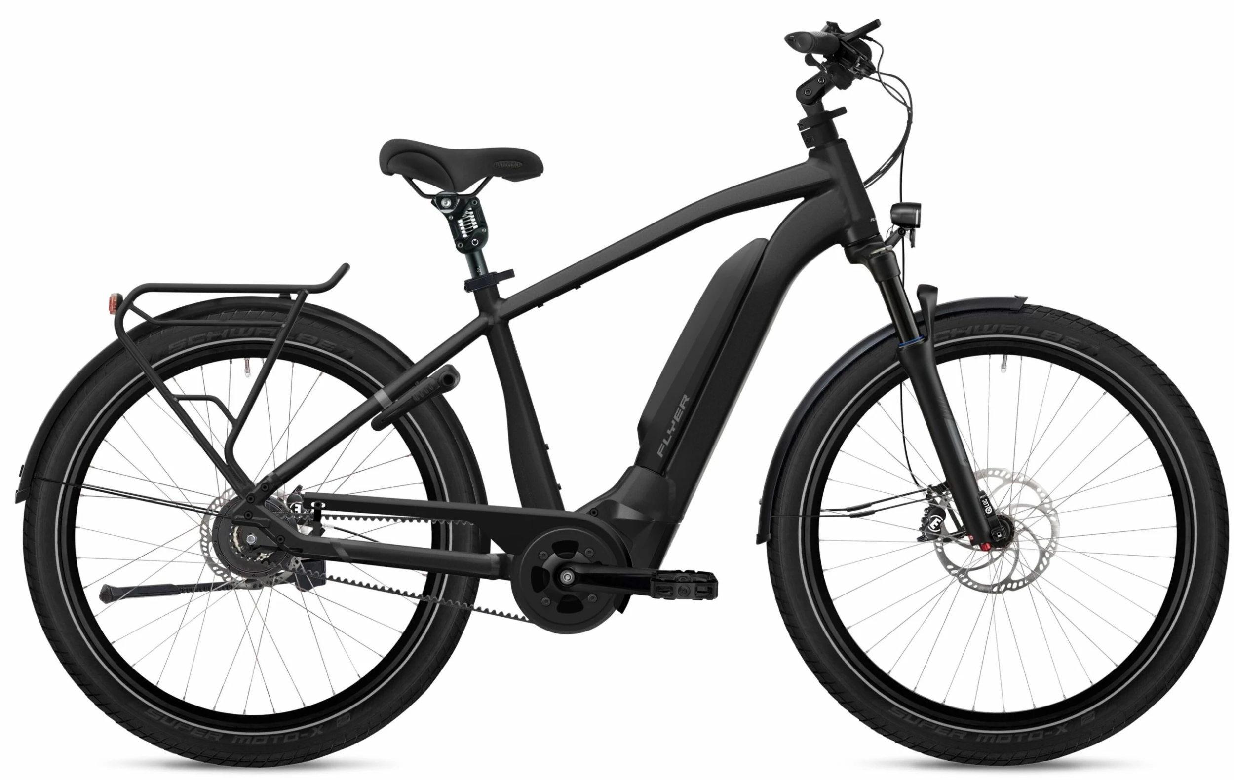 Quelque soit votre morphologie ou votre sexe, le Flyer Upstreet3 7.23 2023 est idéal pour vos premières aventures à vélo électrique. Son cadre en aluminium stable est disponible de la taille S à la taille XXXL et résiste à un poids maximal de 180 kg. La potence à angle réglable et la tige de selle sur ressorts assurent une ergonomie parfaite et une assise confortable. Le Flyer Upstreet3 7.23 2023 est équipé du puissant moteur Panasonic GX Ultimate 90 Nm et d’une batterie de cadre 750 Wh élégamment intégrée. La transmission par courroie Gates Carbon Drive CDX vous épargnera les tâches classiques d’entretien d’une chaîne.