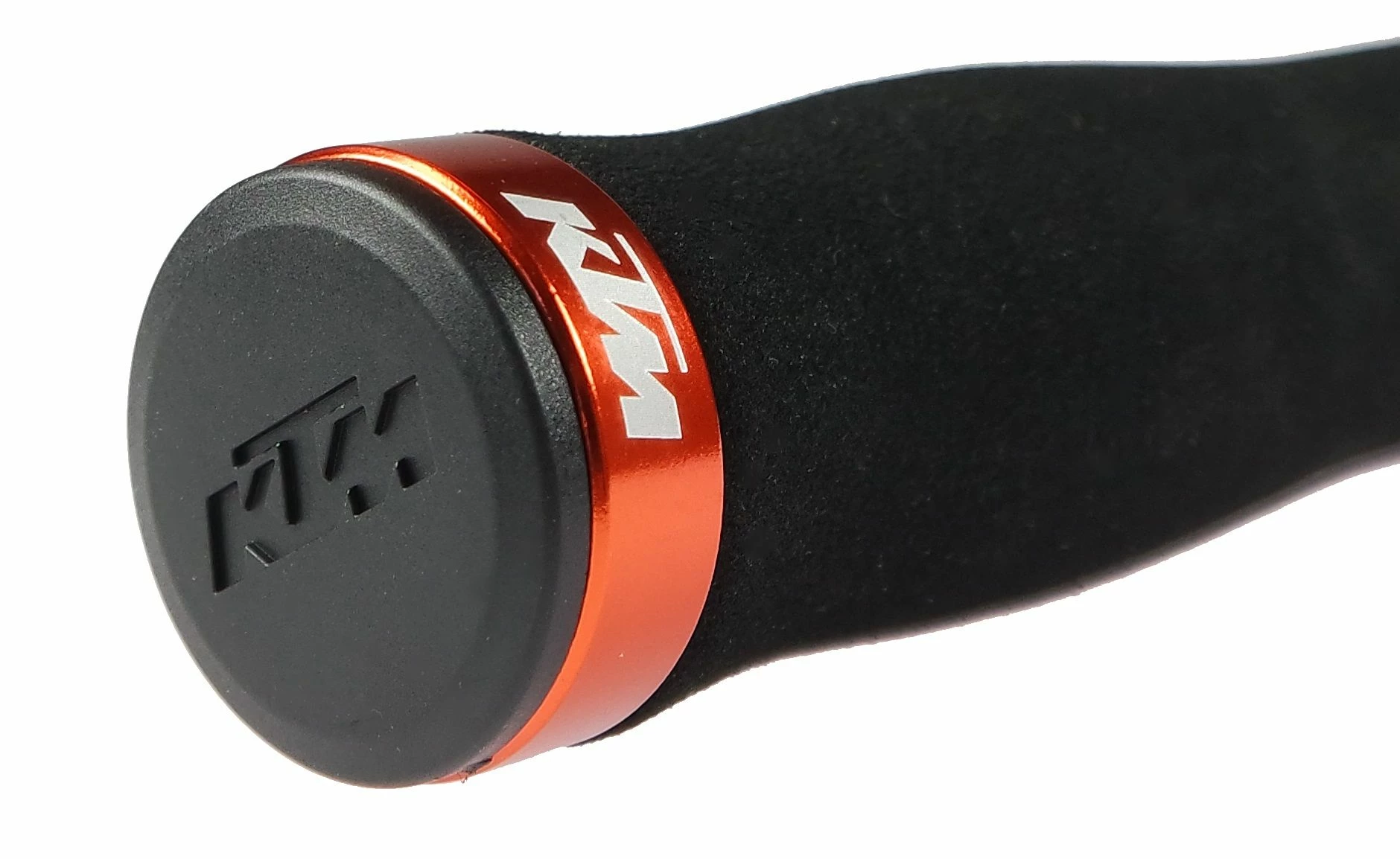 Les poignées mousse KTM conjuguent le confort des poignées ergonomiques en mousse et la facilité du blocage lock-on (bagues de serrages aux extrémités avec vis).